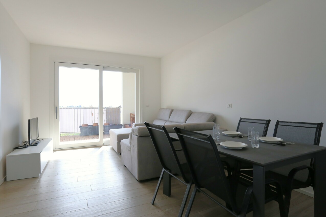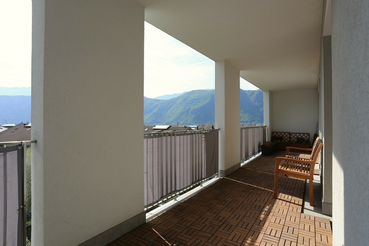 Nel cuore di Laives, in posizione centralissima e comoda a tutti i servizi, proponiamo in vendita appartamento situato al terzo e ultimo piano di una palazzina moderna in classe CasaClima A, costruita nel 2021. L’immobile, di circa 90 mq, si distingue per la qualità costruttiva e per una distribuzione degli spazi funzionale e ricercata. La zona giorno è composta da soggiorno e cucina separata, soluzione ideale per chi desidera ambienti ben distinti e vivibili. Elemento raro e distintivo della proprietà è il grande sfogo esterno: tutti gli ambienti hanno accesso diretto al terrazzo, che si sviluppa lungo l’intera facciata sud dell’appartamento. Un vero prolungamento della casa, perfetto per vivere l’esterno in ogni momento della giornata. La zona notte comprende una stanza matrimoniale e una seconda stanza di buone dimensioni, entrambe con uscita sul terrazzo. L’immobile è dotato di serramenti con triplo vetro, garanzia di elevato isolamento termico e acustico, in linea con gli standard abitativi più moderni. L’appartamento viene venduto completamente arredato, pronto per essere abitato fin da subito. Completano la proprietà una cantina. Garage disponibile e venduto separatamente. Una soluzione recente, efficiente e luminosa, perfetta per chi cerca comfort abitativo, risparmio energetico e una posizione centrale senza compromessi. Immobile soggetto da vincolo di occupazione L.P. 79. Foto e planimetria in galleria!