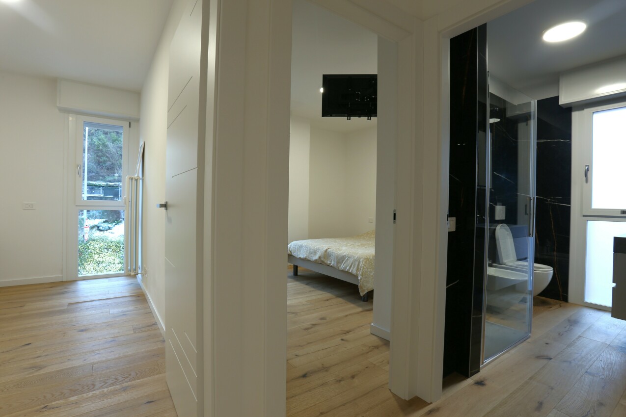 La zona notte si compone di una camera padronale elegante e generosa negli spazi, una seconda stanza versatile, ideale come camera, studio o spazio bimbi e un bagno finestrato moderno e ben rifinito.