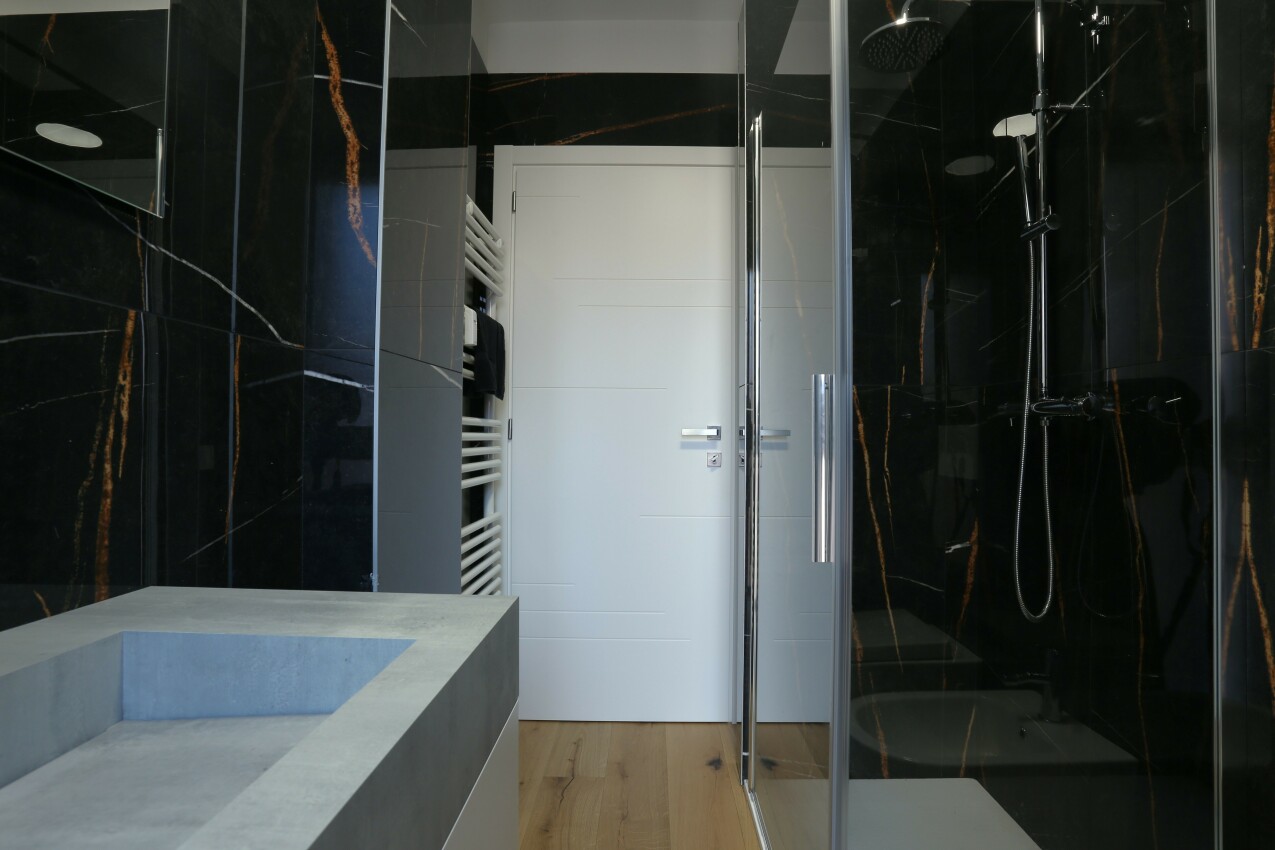 L’ingresso si apre su una splendida zona giorno open space, ampia e accogliente, che conduce al primo balcone panoramico che regala una vista splendida sulla città di Trento. La luce naturale esalta le scelte di design contemporaneo, mentre un comodo ripostiglio/lavanderia, dotato di attacchi per lavatrice e asciugatrice, completa la funzionalità della zona living.