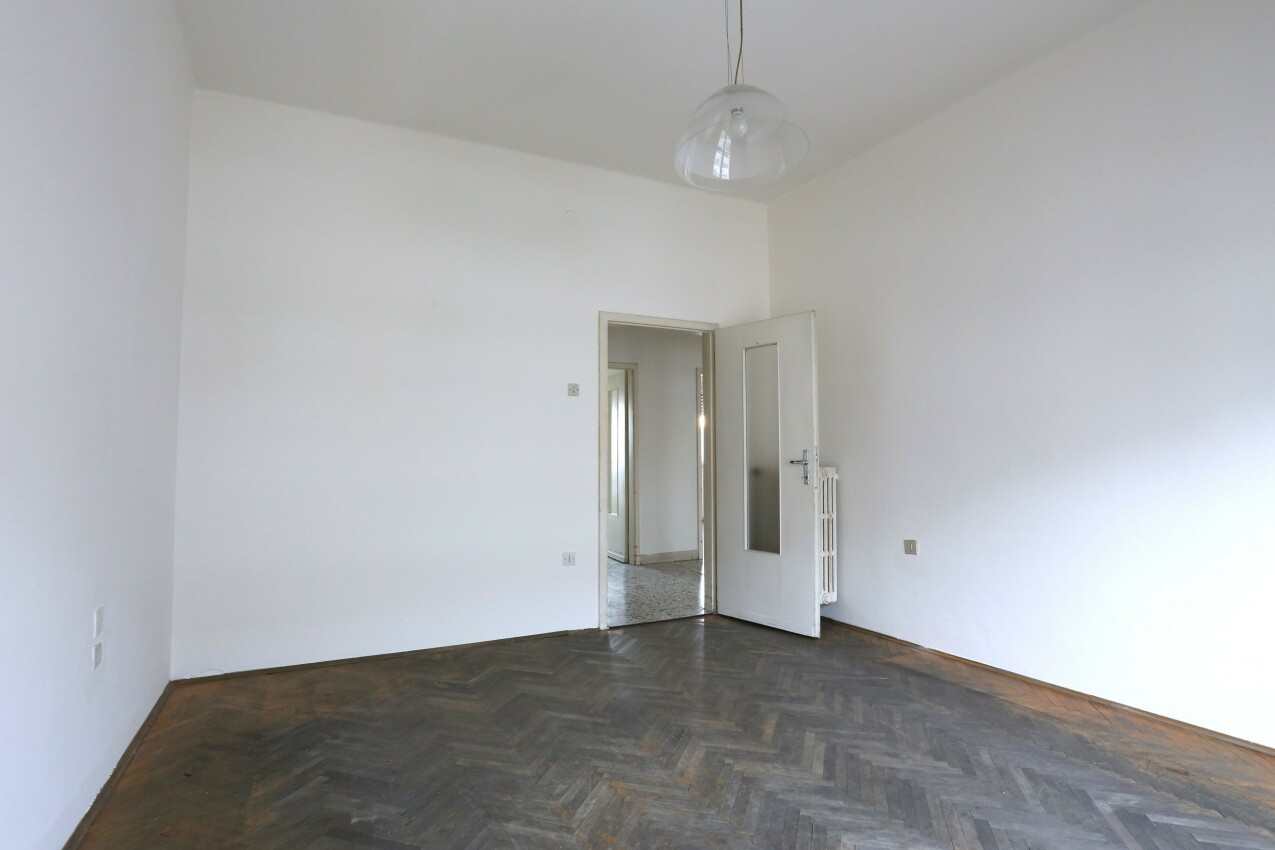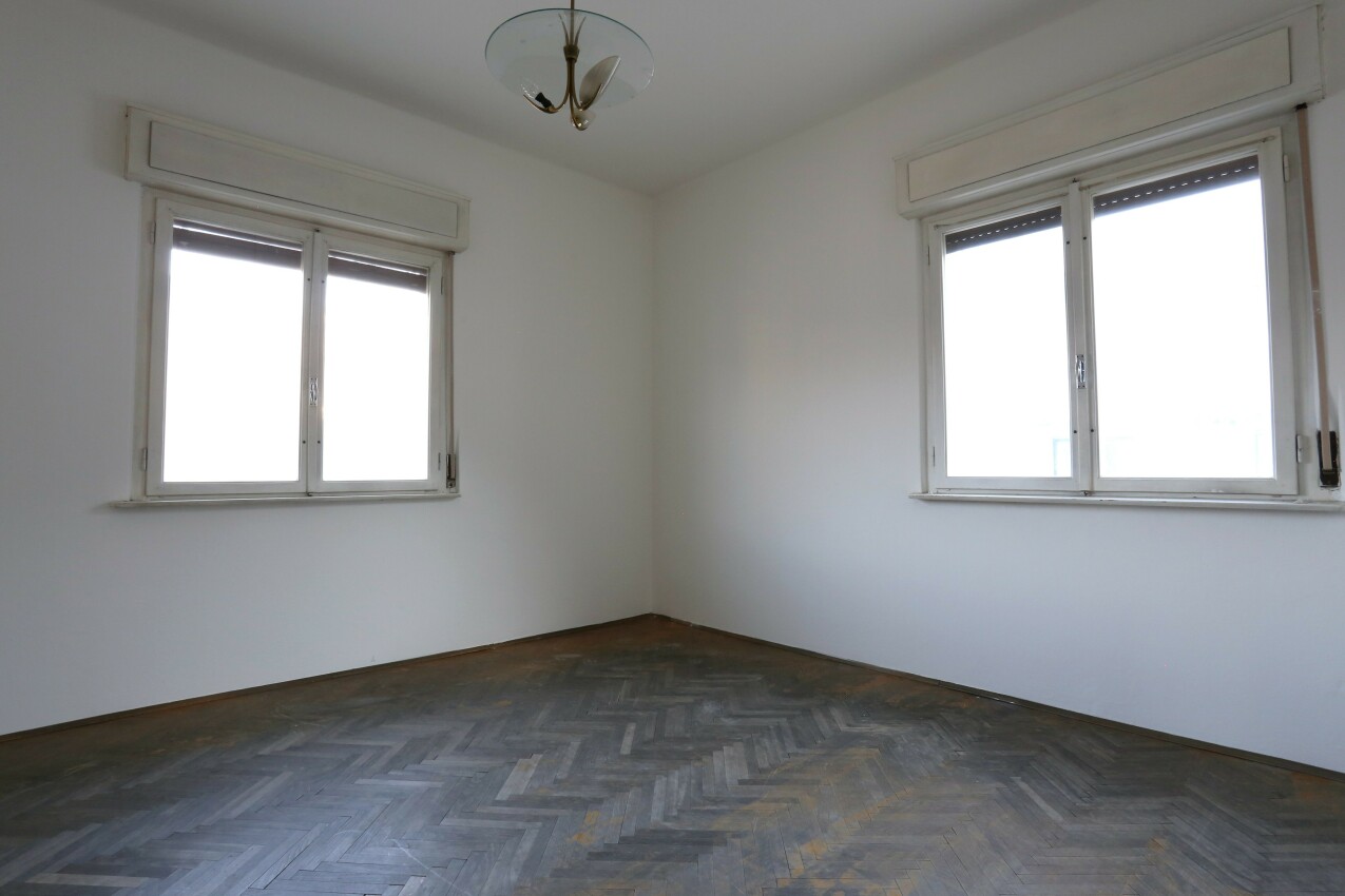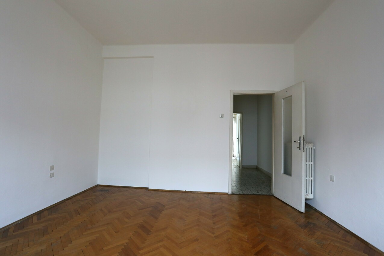 L’appartamento, da risanare, si distingue per le sue ampie metrature e per una distribuzione degli spazi estremamente funzionale. L’ingresso conduce alla zona giorno, composta da sala da pranzo con cucina separata, arricchita da un primo balcone e da un comodo ripostiglio. Il soggiorno, separato e accogliente, ha accesso diretto al secondo balcone esposto a sud, perfetto per vivere momenti di relax all’aperto. Un corridoio centrale accompagna alla zona notte, dove troviamo tre camere di grandi dimensioni, un bagno finestrato e un secondo ripostiglio, anch’esso finestrato, perfetto come studio o ampia dispensa.