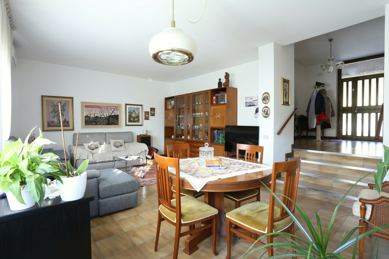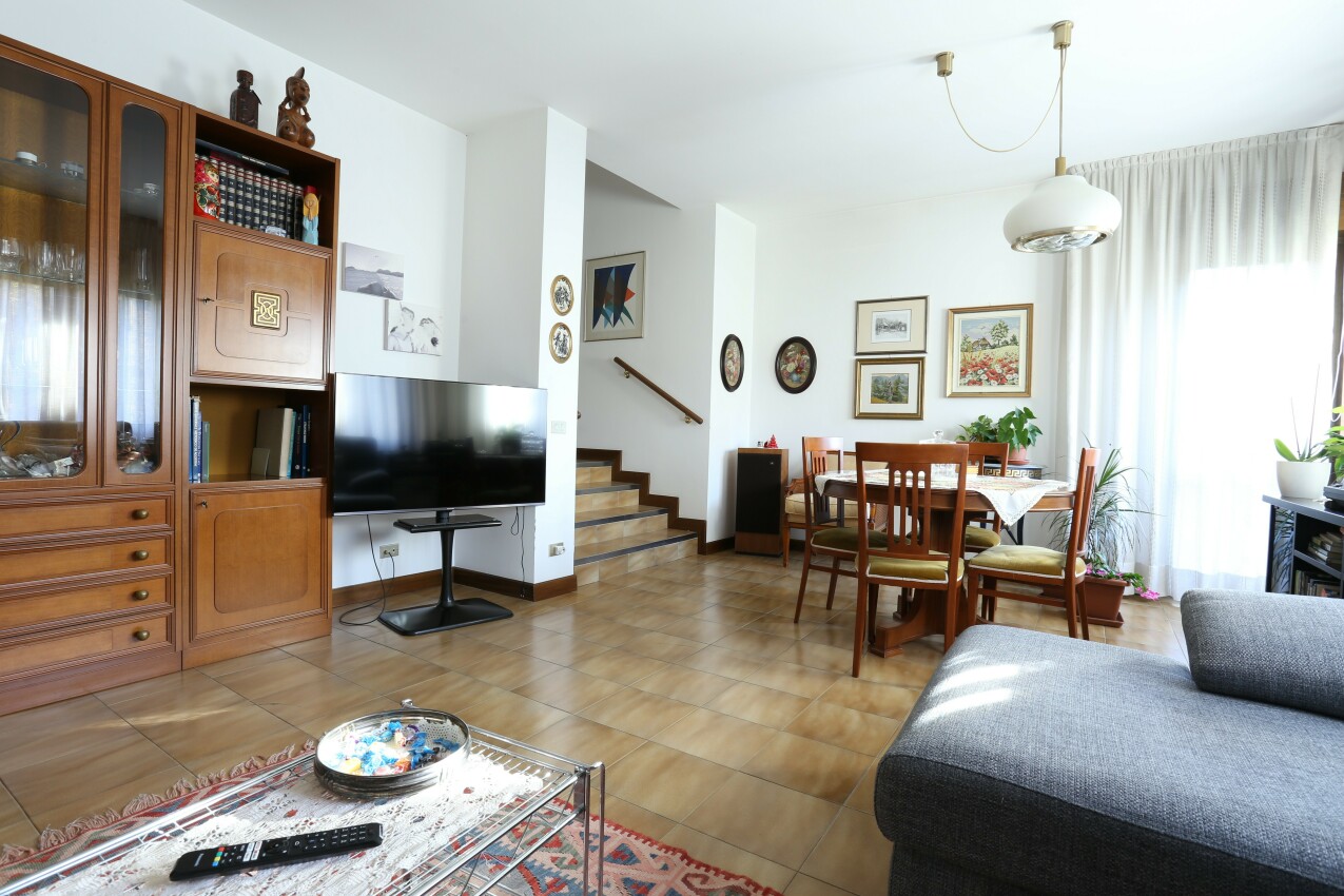 POVO - Zona Oltrecastello. Disponibile soluzione terra cielo in casa Bifamigliare. L'unità abitativa libera su tre lati con affaccio est-sud-ovest, è composta all'esterno da cortile con possibilità di parcheggiare 2-3 autoveicoli, garage privato, ampio giardino esposto a sud-ovest di circa 300mq. L'appartamento con ingresso al piano terra è composto da cucina abitabile, antibagno e bagno zona giorno, con 4 gradini accediamo al soggiorno con uscita al giardino in parte terrazzato, con scale interne si accede all'ampia cantina di 90mq attualmente al grezzo ma con la possibilità di trasformare in stube con finestre a bocca di lupo, completa la zona interrata il locale caldaia in condivisione con la porzione a fianco; sempre dalla zona giorno a piano terra si accede al piano superiore dove sfalsati su mezzi piani troviamo 4 stanze di ampia metratura da 17mq a 12 mq e il bagno della zona notte, da due delle stanze si acceda ad una terrazza di 16mq esposta a sud ovest e ad un balcone esposto ad est, all'ultimo piano non abitabile troviamo la soffitta. Soluzione indipendente con affaccio libero e soleggiato. La soluzione immobiliare è stata costruita nel 1980 con successive manutenzioni e migliorie.